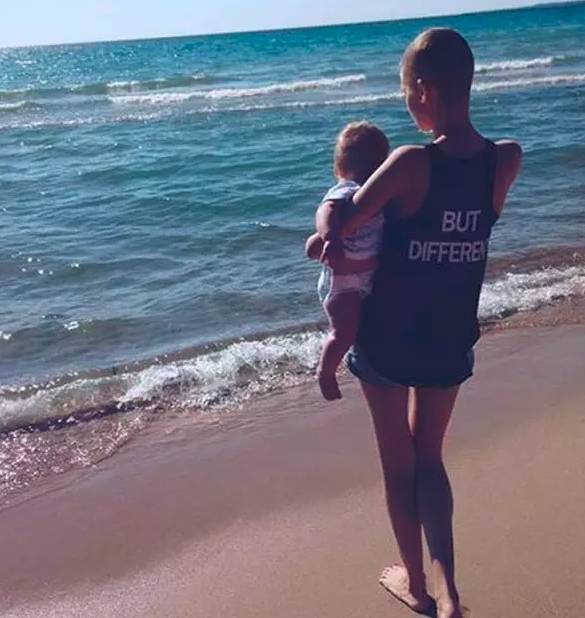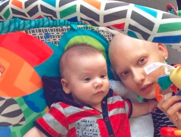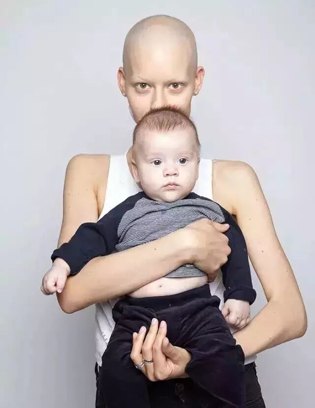 在遭遇癌症的侵蚀后,怀抱着孩子,