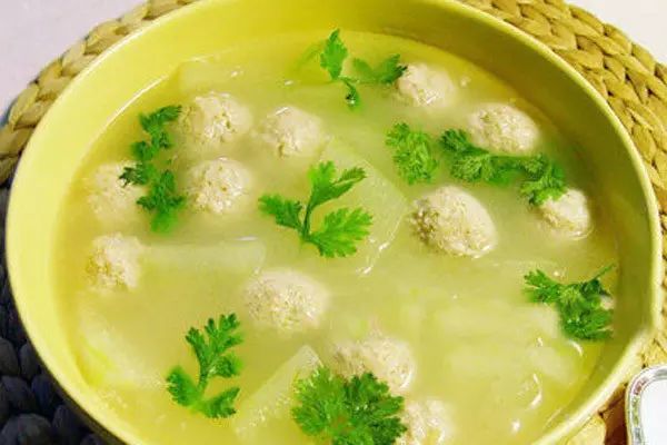 煲汤原料:冬瓜500克、五花肉250克、葱10 克、生粉少许、盐适量、味精适量