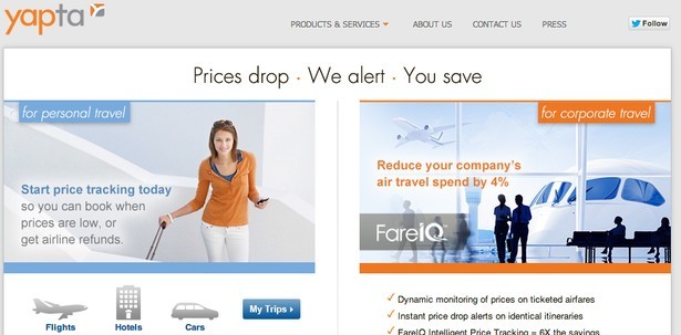 22. Yapta 随时跟踪发布航班和酒店降价情况,网站提供提醒服务。详情请浏览www.yapta.com