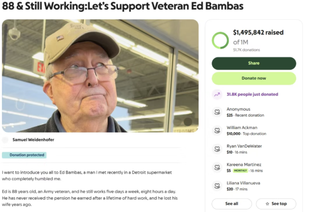 9.88岁美退伍老兵每天站8小时收银!网友怒筹149万美元