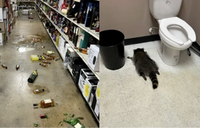 10.浣熊砸烂酒铺货架狂饮威士忌,醉倒厕所被捕!