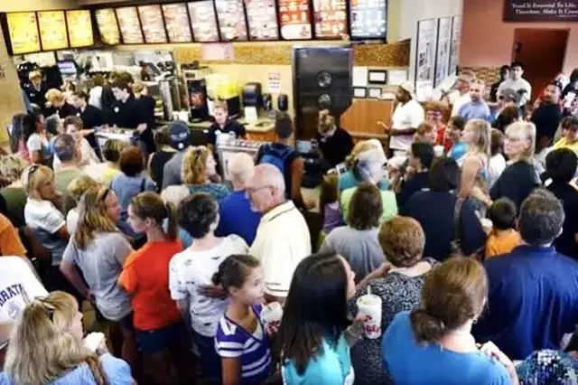 但是Chick-fil-A在美国确实总是处于门庭若市的状态,他家的“得来速”也总是让汽车排着长队。除去口味因素的话,Chick-fil-A家的服务做的是快餐界比较用心的,麦当劳的服务生只会打扫卫生,它家的还会主动要求帮顾客照相,帮顾客把可乐续(Chick-fil-A的可乐是可以续杯的哦)。