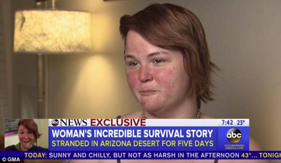在向前徒步走了22英里后,Amber的手机终于有了微弱的信号。她马上向911打了求助电话,虽然整个通话时间只有49秒,而且她不确定对方是否听清了自己的诉求。