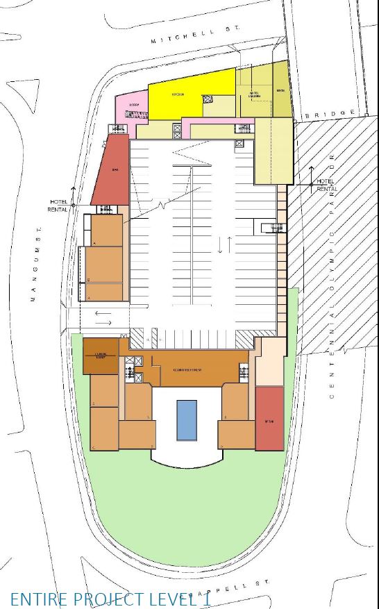 · 停车场:项目停车场将为公寓居民和附近联邦大楼员工提供长期停车车位,为佐治亚体育馆,佐治亚会议中心和项目商务酒店提供短期临时停车位。