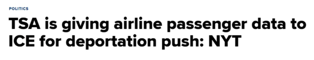 据《纽约时报》12日报道,作为特朗普政府大规模驱逐出境计划的一部分,美国运输安全管理局(TSA)正在向美国移民官员(ICE)提供每位航空旅客的姓名。