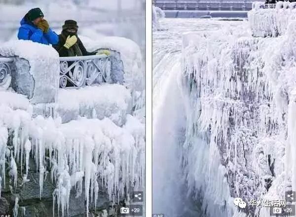 不仅美国的瀑布景点凝结成冰冻仙境,整个北美地区正经历一场12月罕见得酷寒气候,多数地区陷入天寒地冻之境;加拿大消防人员灭火时水管甚至数度结冰。