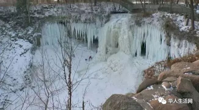 酷寒已使明尼苏达州的明尼哈哈瀑布变成了美丽的冰冻仙境