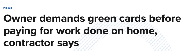 屋主声称是“担心合法性”,承包商认为是“借题发挥”。法律上,屋主可以拒付存在严重瑕疵的工程款;但若以种族或移民身份为由拒付,则涉嫌歧视。