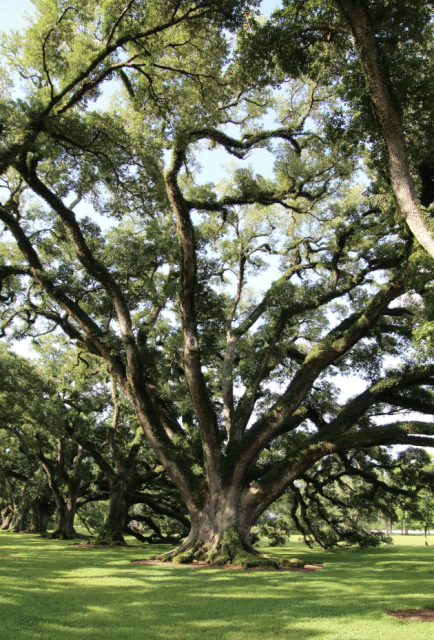 除了玫瑰,这里最著名的自然景观是The Big Oak——一棵种植于1685年左右的南方活橡树(Southern Live Oak),树龄近400年,是密西西比河以东最大的活橡树之一。树冠直径超过165英尺,树干周长超过26英尺,即使历经数百年风雨,依然枝繁叶茂。树下设有小凉亭,游客可以静静欣赏这棵见证历史的“活化石”。许多人专程前来,只为与这棵巨树合影。