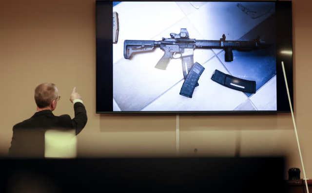 检方的逻辑是,14岁的儿子科尔特(Colt)早已表现出对大规模枪击案的病态迷恋(甚至在卧室墙上建立了枪击案凶手的“祭坛”),且学校和社交工作者多次敦促其父亲寻求心理咨询。