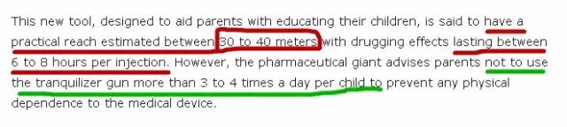 【小娅按:】据网友反馈,该“新闻”应该是个谣言(http://www.thatsfake.com/has-the-fda-approved-the-use-of-tranquilizer-guns-for-kids/)。大家就当段子轻松一下吧。