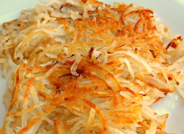 马铃薯分Hash Brown (马铃薯削拼成的烤饼,下图左)、Breakfast Potato (切块的烤马铃薯,下图右)、和Fries (炸薯条),但是很多店并不清楚Hash Brown和Breakfast Potato的区别。