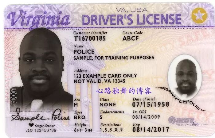 最后一个也常是最重要的,那就是驾照,上面除姓名之外还有照片、家庭住址、出生日期、性别、身高、眼睛头发的颜色等信息,见下图。