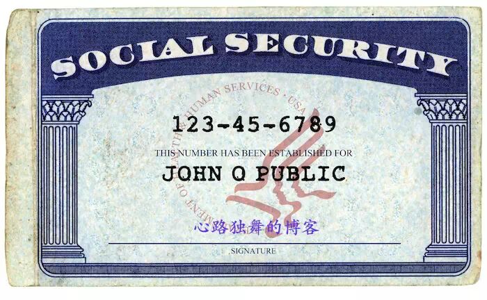 另外一个是社会安全卡,上面有名字和一个九位数的社会安全号码,下图是社会安全卡的样子。