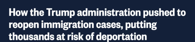 这些案件此前曾被移民法官“行政性关闭”,即暂时从法院日程中移除,但并未正式结案。如今,政府要求将这些案件重新排期(recalendaring),重新进入审理流程。