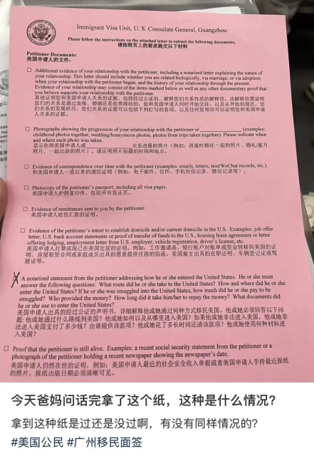 近日,广州美国总领馆突然放大招:一大批入籍华人给父母办移民签证的案子,被狠狠卡住!面签完本来以为过关,结果回家就收到补件通知,打开一看,全家直接懵了。