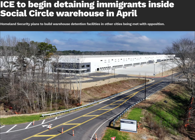 联邦政府斥巨资购买了位于 Hightower Trail 的一座大型仓库,计划将其改建为可容纳 10,000 人的移民拘留中心——而这个小镇的总人口,满打满算也才 5,000 人。