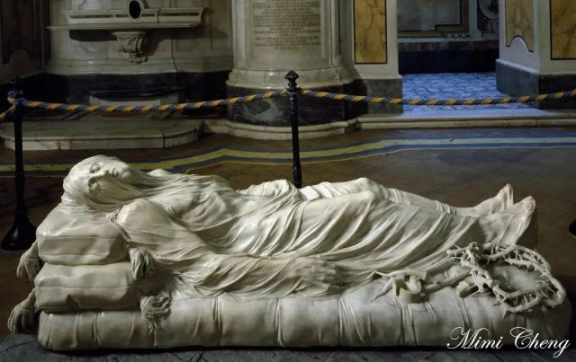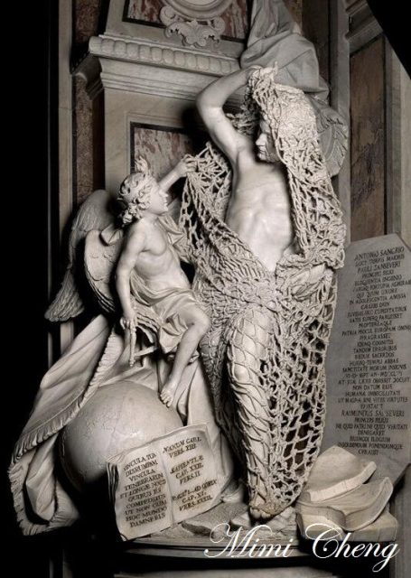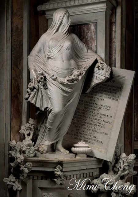 教堂中的另一件蒙纱作品《Modesty》,出自 Antonio Corradini 之手,是委托人 Raimondo di Sangro 为纪念母亲而创作,柔美而深情。