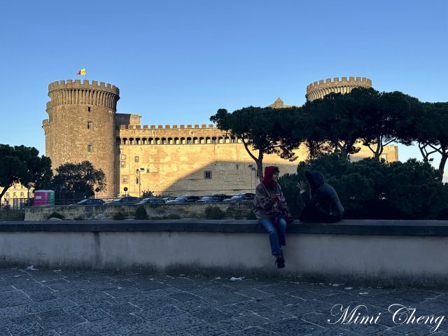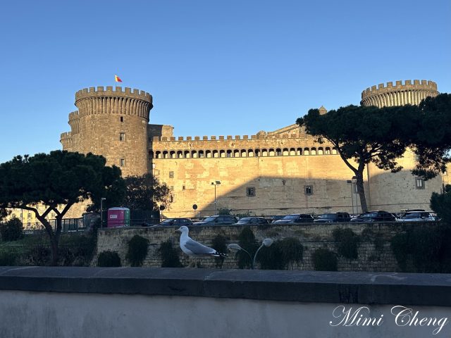 蛋堡 Castel dell’Ovo 在阳光下呈现出温暖的土红色。