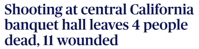11月29日傍晚,加州斯托克顿一次家庭生日派对上发生严重枪击事件,造成至少4人死亡、11人受伤。死者年龄从8岁至21岁不等,包括多名儿童和年轻成年人。当地警方表示,初步迹象显示,这可能是一宗针对性的袭击。