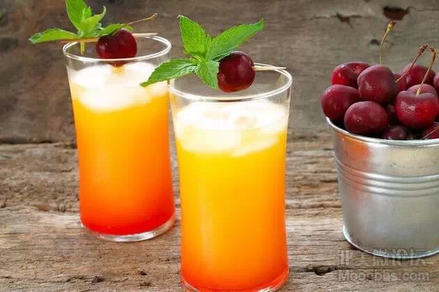 龙舌兰日出(Tequila Sunrise):因层次分明而富有趣味,果香扑鼻。基酒为龙舌兰,加入了橙汁、柠檬汁和石榴汁。