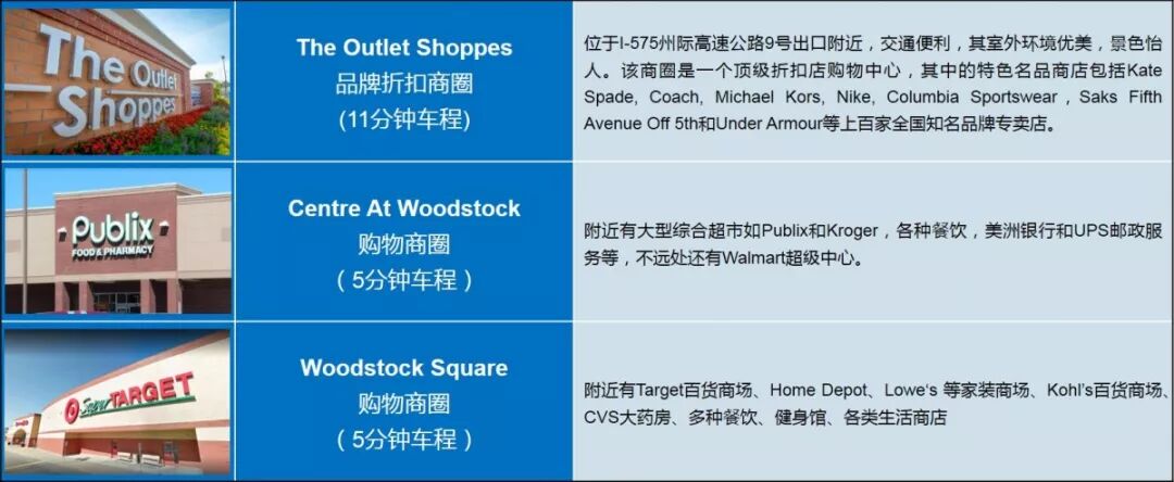 Woodstock所属的Cherokee县约有25.5万人,是佐治亚州十大宜居郡县之一,经济发展、公共教育、社区安全、居民健康等全部处于全州前列,也是亚特兰大地区人口增长最快的郡县之一。同时,Cherokee县产业机构多元,其先进制造、企业总部、影视、商业开发和信息科技等主要产业集中了超过700家企业(其中包括近50家跨国企业),并在过去的5年间吸引了超过9亿美元的投资,增加了超过5000份就业。