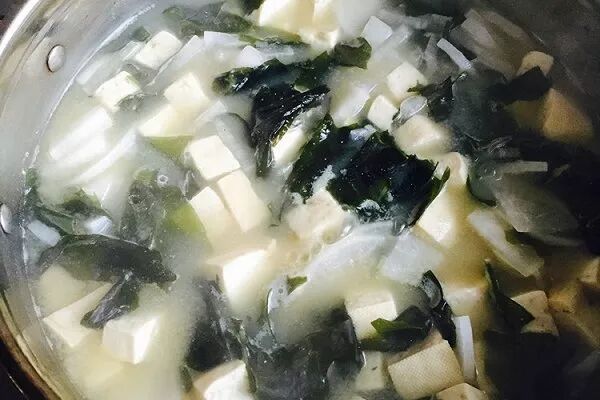 材 料:白萝卜半个,豆腐适量。海带一小把,有机细味增3勺步 骤: