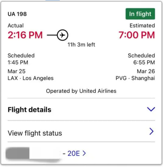 他购买了一张洛杉矶往返上海的商务舱机票,总价约8000美元,并提前选好了座位。由于行程只有一周,他只带了一件登机行李,也没有特别担心。