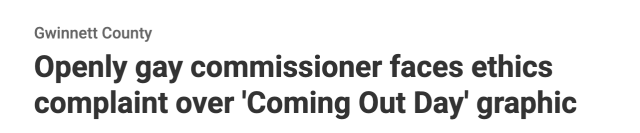 投诉核心在于——National Coming Out Day并非Gwinnett County或佐治亚州官方认可的节日,因此使用县资源制作并发布相关海报是否适当。