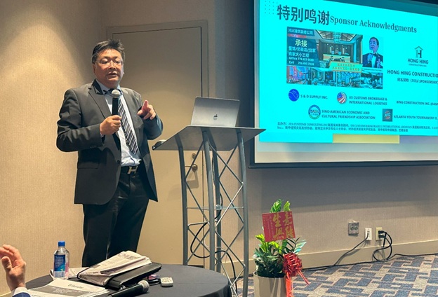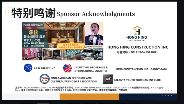活动由勾爱众(Allen Gou)主持——Allen是一名拥有美国所有港口报关权的持牌美国报关师,同时也是亚特兰大青少年竞技俱乐部董事长,多年来热心公益,为亚特兰大华人社区作出了积极的贡献。