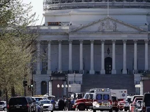 當天,不停開來的急救車佔滿了街道。扛著長槍的警察,立即封鎖現場周圍的街道建設。遊客們紛紛從國會大廈回撤,這些都是來參觀國會山的遊客,和過來DC度春假及看櫻花節的遊客。