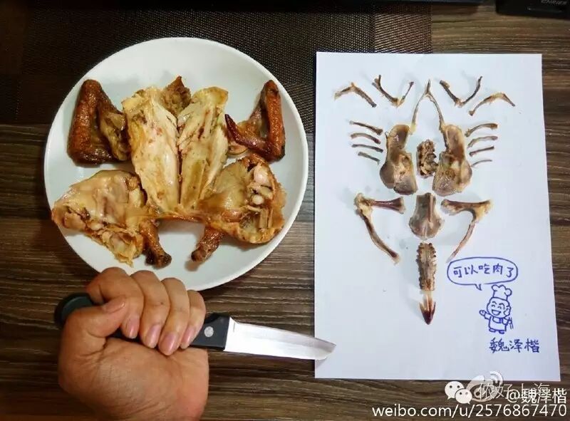 他還把「魔爪」伸向了肉食,刀功如外科手術大夫般的精湛,簡直是教科書級的吃法!