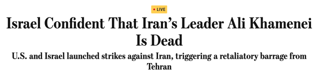 以色列總理內塔尼亞胡在全國電視講話中表示,有「越來越多的跡象」表明哈梅內伊在襲擊其辦公地點時已經喪生。隨後,兩名匿名以色列官員向美聯社證實了哈梅內伊的死訊。目前,這一消息尚未得到美方或伊方的最終確認。