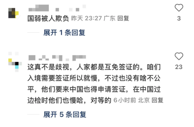 也有人冷靜分析:「那些先走的旅客來自免簽國家,檢查程序確實更快。」「這不是歧視,是制度不同。」