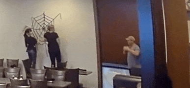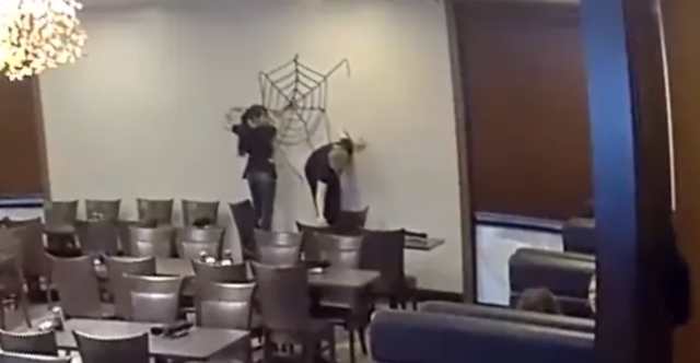 女服務員正在布置萬聖節裝飾,卻在下一秒救回了一條命
