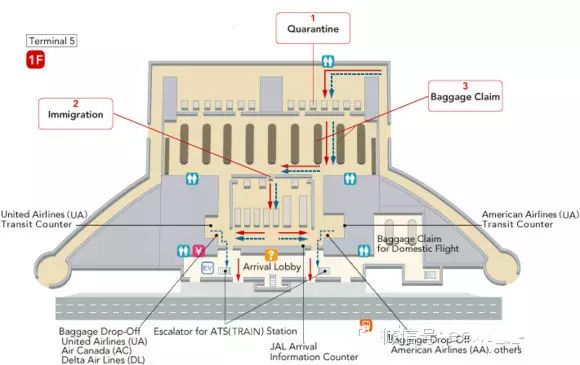 首先,無論你在哪個Terminal下飛機,都是有海關,然後領取行李的。每個Terminal都有入境處,而入境方法和注意事項和其他機場一樣,然後領取行李過海關。(具體入境方法參考入境全解析一文)過完海關,請注意:並不是每個航空公司都會在你所在的Terminal有行李轉機託運的!如果沒有,很不幸,你得帶著你所有的箱子,去另外一個Terminal找行李轉機...