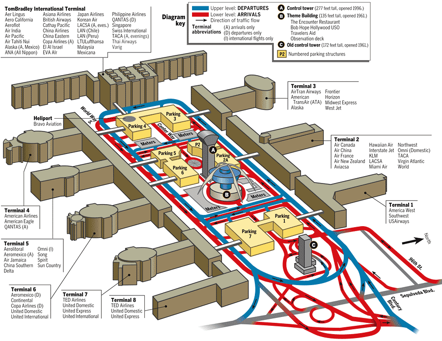 LAX-洛杉磯機場航站樓示意圖及轉機指南