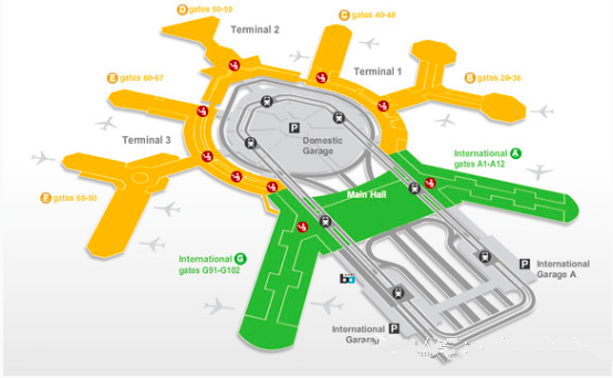 在美國,可以入境的機場有:洛杉磯,舊金山,西雅圖,紐約,芝加哥,亞特蘭大,華盛頓,底特律。對於入境以後需要轉機,英語又不是很流暢的同學更是一件麻煩事,列舉一些機場航站樓的示意圖,這樣在臨行前做好轉換航站樓的準備,找好擺渡車的乘坐方向,這樣就不會擔心錯過下一班飛機啦。另外,從機場到學校也是有一段距離的,很多初次到美國的同學並不知道要怎麼打車或者是乘坐交通工具,提前在網上訂好擺渡車shuttle也是重要課程之一。所以,長按www.supershuttle.com 並拷貝到你的瀏覽器來學習如何訂Shuttle吧~
