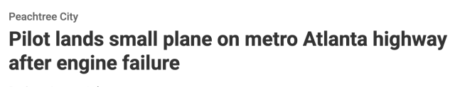 面對緊迫局勢,機上的飛行員與學生並未驚慌失措,而是果斷操控飛機,穩穩地降落在繁忙的Peachtree City74號公路上。