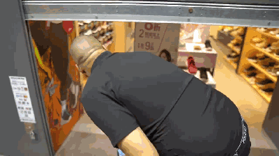 路過一家正在關門的鞋店,這位黑人老兄還直接鑽了進去。