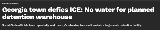 然而,小鎮官員開始發聲。他們反覆向聯邦政府表達擔憂:小鎮的水和污水基礎設施根本無法承受如此龐大的新增需求。在多次溝通無果後,Social Circle市府本周採取了強硬行動——在倉庫的水表上加了一把鎖,直接切斷了水和污水服務。