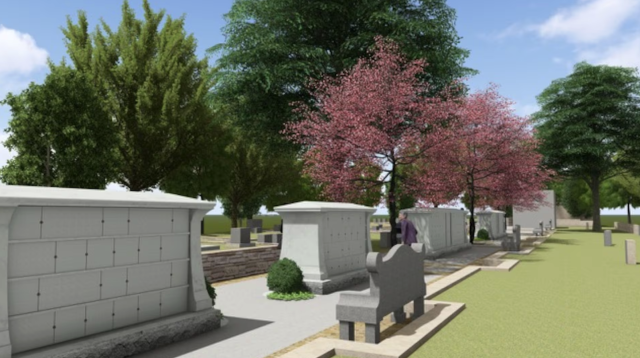 在一個陽光微涼的下午,65歲的退休飛行員戴夫·庫皮克和妻子蘇珊靜靜坐在一條舊長椅上。身旁的道路龜裂、布滿斑駁痕迹,不久後這裡將被鋪上新的磚石,並豎起一座設計仿古的花崗岩骨灰龕堂。他們已經購得其中一席。