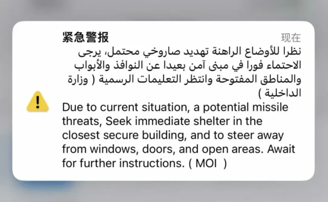 在迪拜收到的緊急警報 受訪者供圖