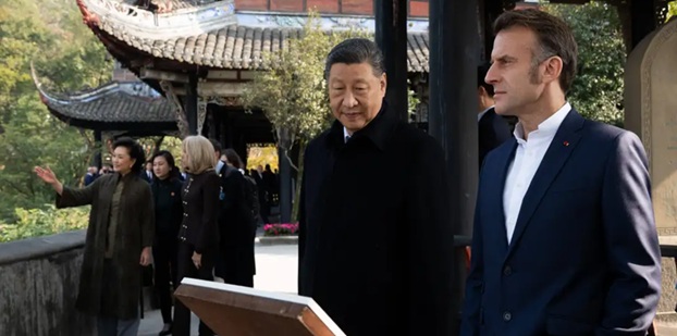 2025年12月5日,法國總統馬克龍在都江堰與中國領導人進行友好交流。