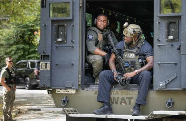 周三早上10點半,亞特蘭大警局的SWAT特警隊包圍了房子。除了法警,還有克萊頓縣的警犬部隊一起參與。