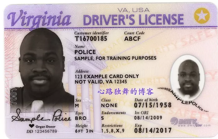 最後一個也常是最重要的,那就是駕照,上面除姓名之外還有照片、家庭住址、出生日期、性別、身高、眼睛頭髮的顏色等信息,見下圖。