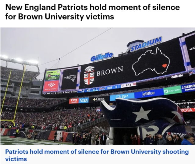 此外,新英格蘭愛國者隊也在比賽前為布朗大學槍擊案遇難者舉行了默哀儀式。