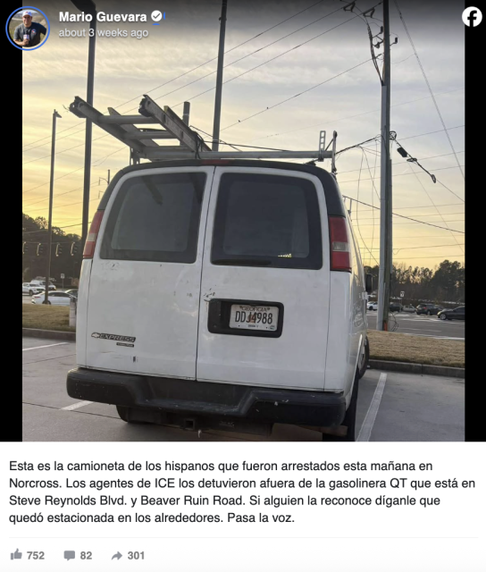 前亞特蘭大移民記者 Mario Guevara(已於今年10月被遣返)指出工作麵包車,已經成為提升移民拘捕數量的高命中率目標。