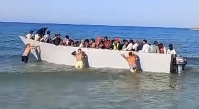 驚呆!非法移民小船靠近度假勝地,被當地大爺大媽「送客」,合力推回大海