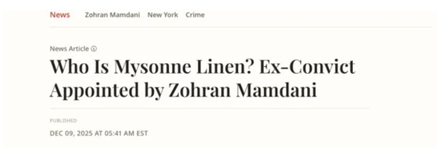 紐約市當選市長佐蘭·曼達尼(Zohran Mamdani)近日宣布的過渡團隊名單中,一個名字引發了軒然大波:邁索恩·利寧(Mysonne Linen),一位曾因持械搶劫罪被判入獄七年的前說唱歌手,被任命為新政府刑事司法系統過渡委員會成員。